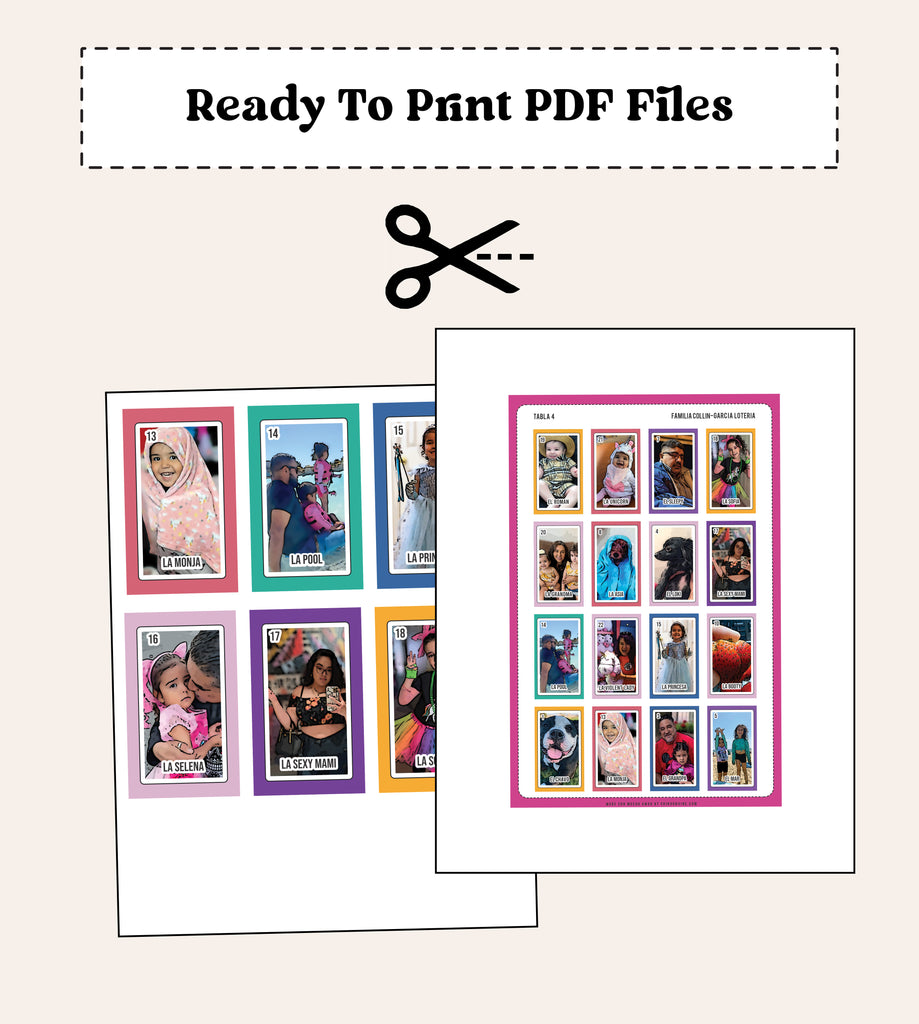 Bring laughter, connection, and nostalgia to your next family gathering with a Custom Family Lotería Game designed by Viridiana Osio. Each set blends the classic Mexican game with your own family photos, a perfect mix of tradition and individuality.